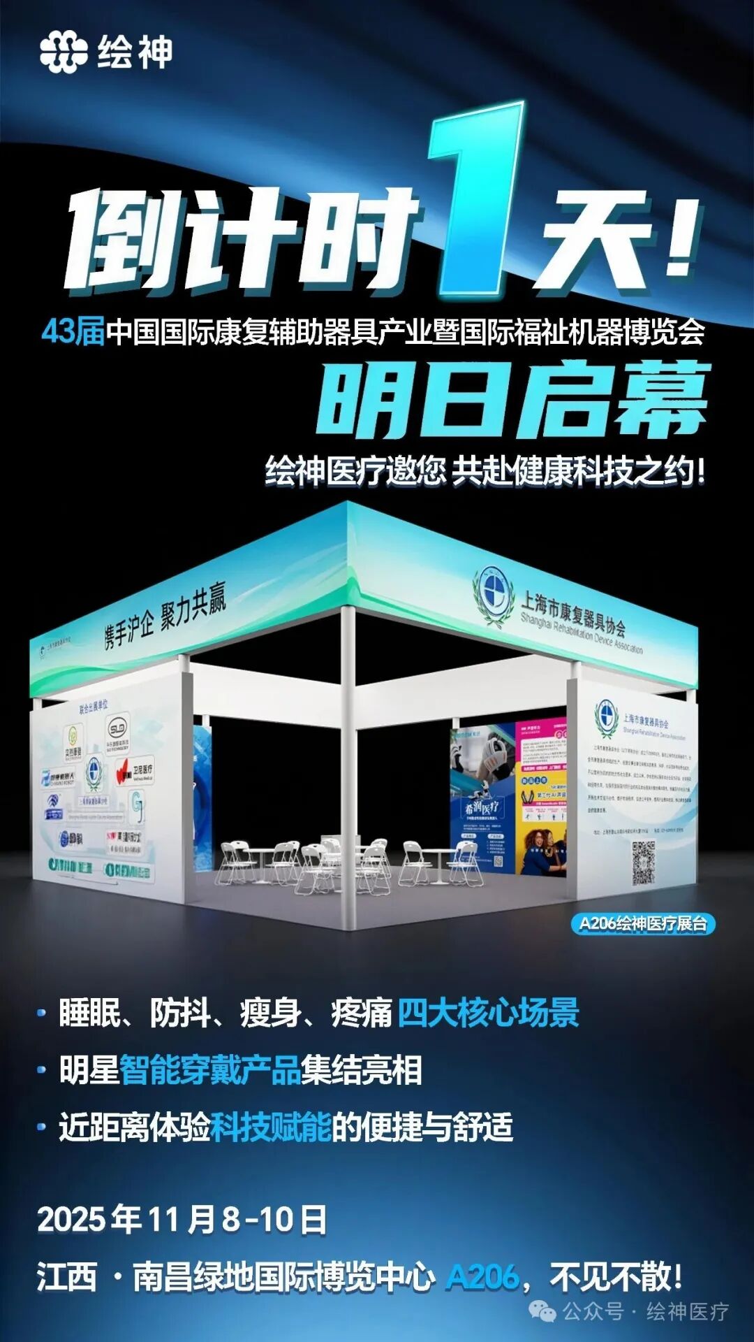 科技创新是推动健康生活普惠化的重要力量。作为神经调控领域的创新引领者,绘神医疗将在第43届中国国际康复辅助器具产业暨国际福祉机器博览会中,展出围绕睡眠、防抖、瘦身、疼痛四大核心场景的智能穿戴产品,让先进的医疗设备以智能穿戴的便捷形式融入大众生活,成为患者健康管理的贴心伙伴。