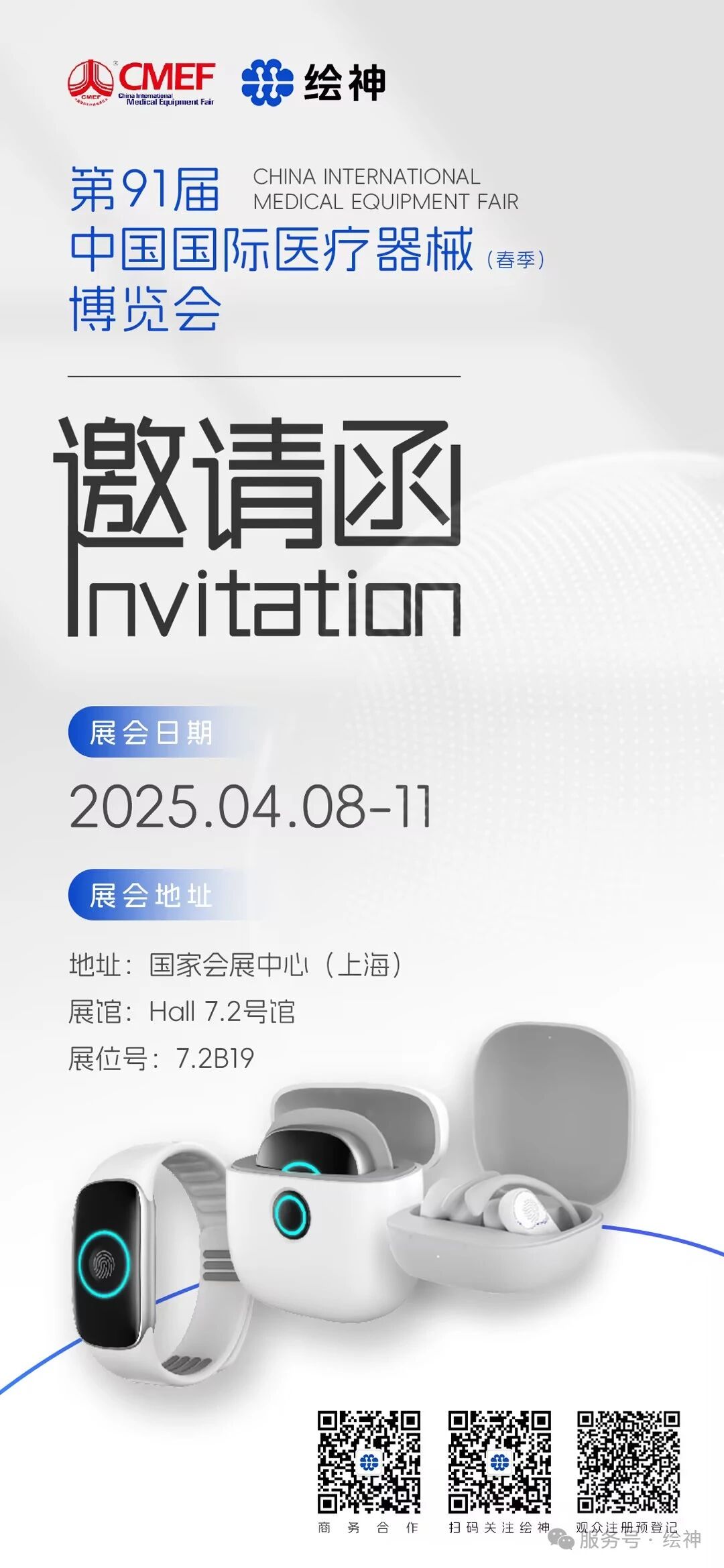 4月8-11日,第91届CMEF中国国际医疗器械博览会将在国家会展中心(上海)掀起一场颠覆认知的科技风暴,绘神医疗携核心创新成果入驻7.2馆B19展台,与您共同解码万亿级医疗市场的未来密码。